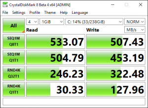 NVME Drives and Oracle Database Mustafa Kalaycı, 2020-08-20 Hi There, NVME drives are so hot these days. They have amazing read/write speed. my old samsung ssd drive can read and write around 550/530 MB per second and my even older 2.5inch hdd drive has 45/20 MB per second. Current NVME disc drives has around 3500 read and 3000 MB per second which is extremely high. Also, there are many people using raid 0 on nvme drives and some of them has reached 33GB per second read and 28GB write speed. so these are incredible speeds and you might want to use them in your database, especially the parts that requires too much IO like REDO Logs. Well think again and be careful before an upgrade! Not all Nvme drives has the same basic speed thresholds. I made some tests on a server which is a dedicated server at a hosting company and would like to share the results. On this server there are 3 Nvme drives (TOSHIBA KXG60ZNV512G ) and 1 SSD drive (Micron 1100). SSD drive is the boot drive and Windows 2019 standard edition on it. Now first one of the most popular test, Crystal Disk Mark Results: SSD: Nvme: as you see NVME is much much faster on every category on Crystal disk mark. My basic thought was put every main component on a different NVME and check the “transaction per second” (TPS) value and I installed 19.3 on the first NVME drive and create a database. data files reside on first Nvme, redo logs on second and archive logs on the third. That way all IO intensive components will be on different Nvme drive and I thought performance would be super high. Also I just have 1 redo log member for each redo group to eliminate extra disk IO. To test database (a stress test actually) I used “swingbench” which is a great tool to test your database, written by Dominic Giles. Many thanks to him. I used “stress_test” model to check real transaction per second value, I used 24 simultaneous sessions and I only used INSERT statements. so screenshot of “ALL NVME” configuration test result is : so TPS has a stable graphics with around 10,800 TPS. (testing result with all DML and select is around 18,000 TPS) one of the biggest IO bottleneck is REDO and I think the second is archive log. when a redo log switch occurs, old redo log file is written as archive log. during that time both redo drives are read and archive log drive is written but as you see in the graph there is no down points and I assure you there were 2 – 3 redo log switches during the test above. just for the curiosity, I put those components (redo, data file, archivelog) into different drives or put them same drives. One of them was locating redo logs into SSD drive not nvme! So, I expected much much less TPS and here is the result: yes, that is insane! TPS was around 29,000! ((testing result with all DML and select is around 51,000 TPS) almost 3 times faster than Nvme! How is that possible. First if as you see in the graph it wasn’t stable. at some point it goes down around 7,000 TPS. That is the time redo log switch occurs. since I have 1 SSD drive I couldn’t test more but I am pretty sure if I have 2 SSDs and put a redo file each of them, that down wouldn’t happen. because SSD is not enough capacity to read and write at the same time. So SSD is 3 times faster than Nvme? not quite actually but I will come up to that later. So what happened here? I check crystal disk mark results and they were awesome. Main problem is REDO has a very small block size which is 512 Byte. Crystal disk mark does not check that size by default so I used another disk benchmark utility. ATTO here are the results: SSD: Nvme: if you check 512 Byte test, that SSD has 42 MB/s write speed and Nvme has just 28 MB/s. That explains a lot. Nvme disks are mostly designed to process big files in big chunks but not for small files in small chunks. of course this is not true for all Nvme drives. hosting companies uses “datacenter edition” nvme drives mostly. more reliable but has lower performance on some points. For example, this is a Samsung 970 Pro Atto result: it has around 70MB/s write speed at 512 Byte. if I have to chance to use this nvme, probably putting redo log file on this let me have much more TPS than that SSD. So I am not saying, use SSD instead of Nvme. Just check first! as in my example it might decrease your performance. Also I will try to test a sever with more ssd and see if I could prevent TPS down while archiving redo. I wish you all healthy days. Edit: by the way to eliminate the archiving load, on SSD drive, I created a one big redo file with 10GB and tested, TPS was stable and reached around 30,000 for just insert and 53,000 TPS for all operation) 19c Administration Performance archive logarchive log performancenvme discnvme driveoracle benchmarkoracle database performance on nvmeoracle nvme ssdoracle nvme storageredo IO performanceredo logredo log performancessd vs nvme